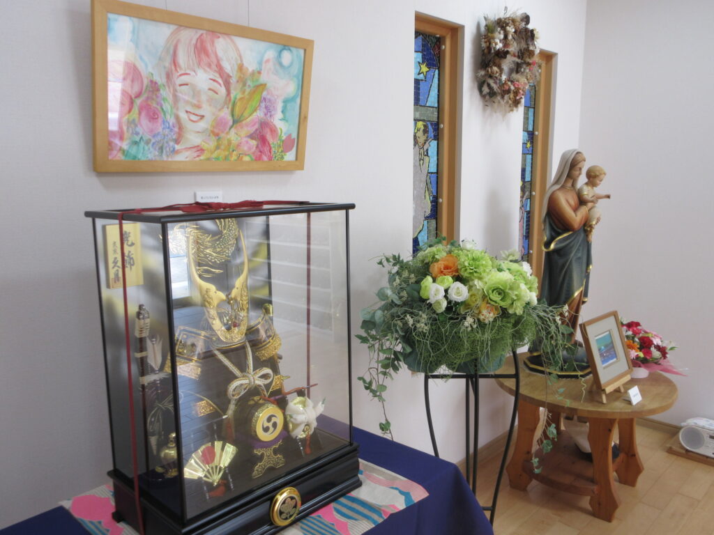 玄関には兜、庭にはハナミズキが咲き、季節の移ろいが感じられるこの頃です。