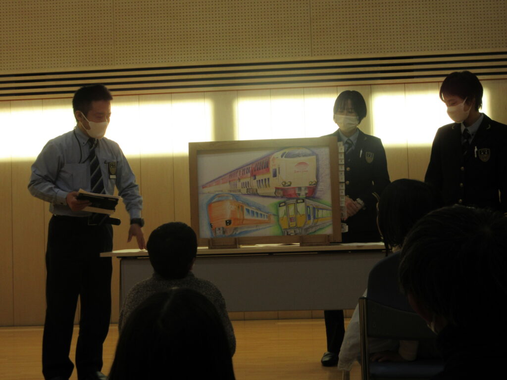 踏切マナーの紙芝居をしていただきました!手作りの紙芝居に、子ども達も見入ってルールを知ることが出来ました。