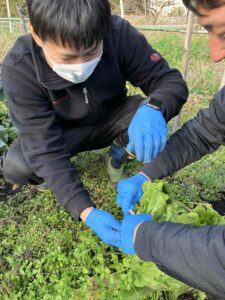 白菜を藁で縛って冬支度!